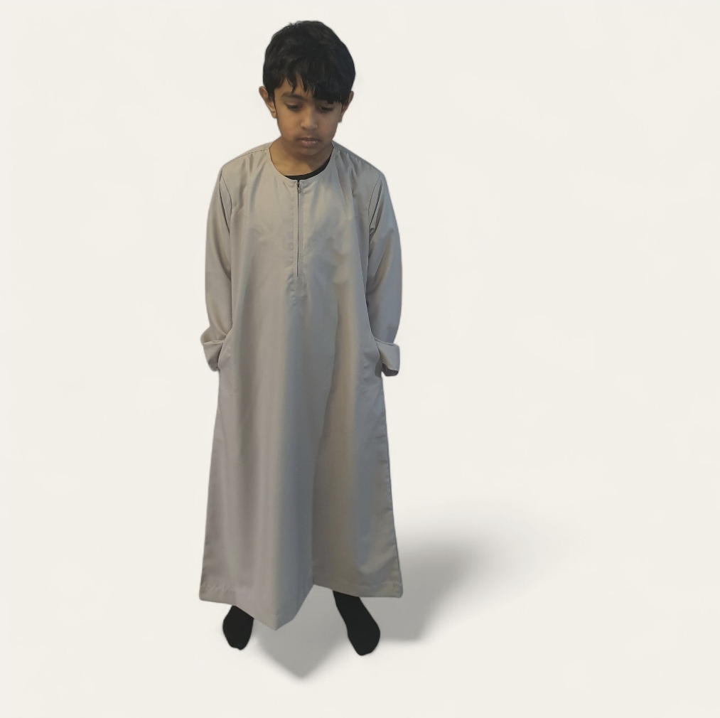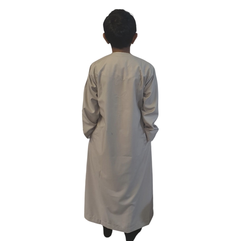 Elegant, timeless, and effortlessly comfortable — this Beige Omani Style Boys Thobe is a perfect blend of tradition and modern simplicity. Made from premium fabric, it offers a soft, breathable feel that keeps your little one comfortable all day long. The subtle beige tone adds warmth and sophistication, ideal for daily wear, prayers, or special occasions.