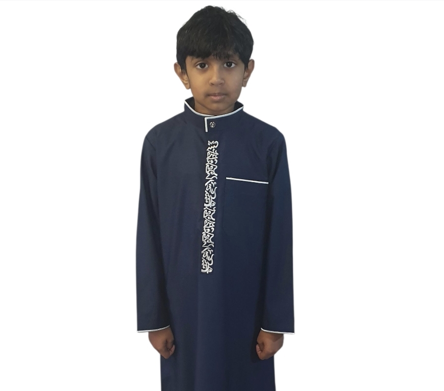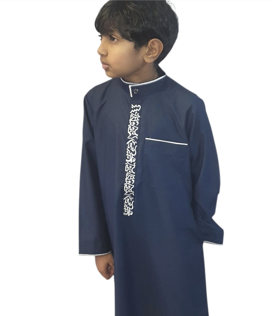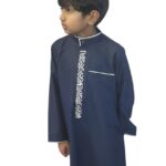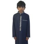 * This boys’ thobe features an embroidered collar, adding a touch of elegance.